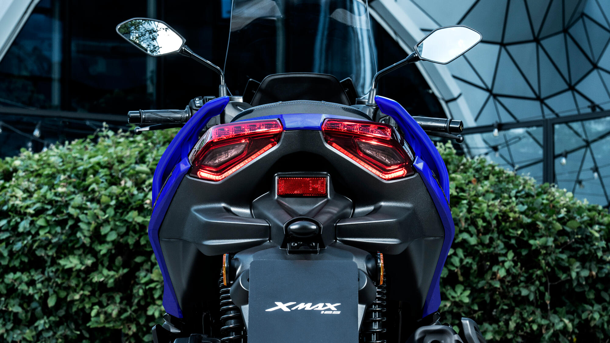 XMAX 125 má výrazné přední LED světlomety ve tvaru X a také LED blinkry, vzadu vás čeká také kompletní LED osvětlení vč. blinkrů.